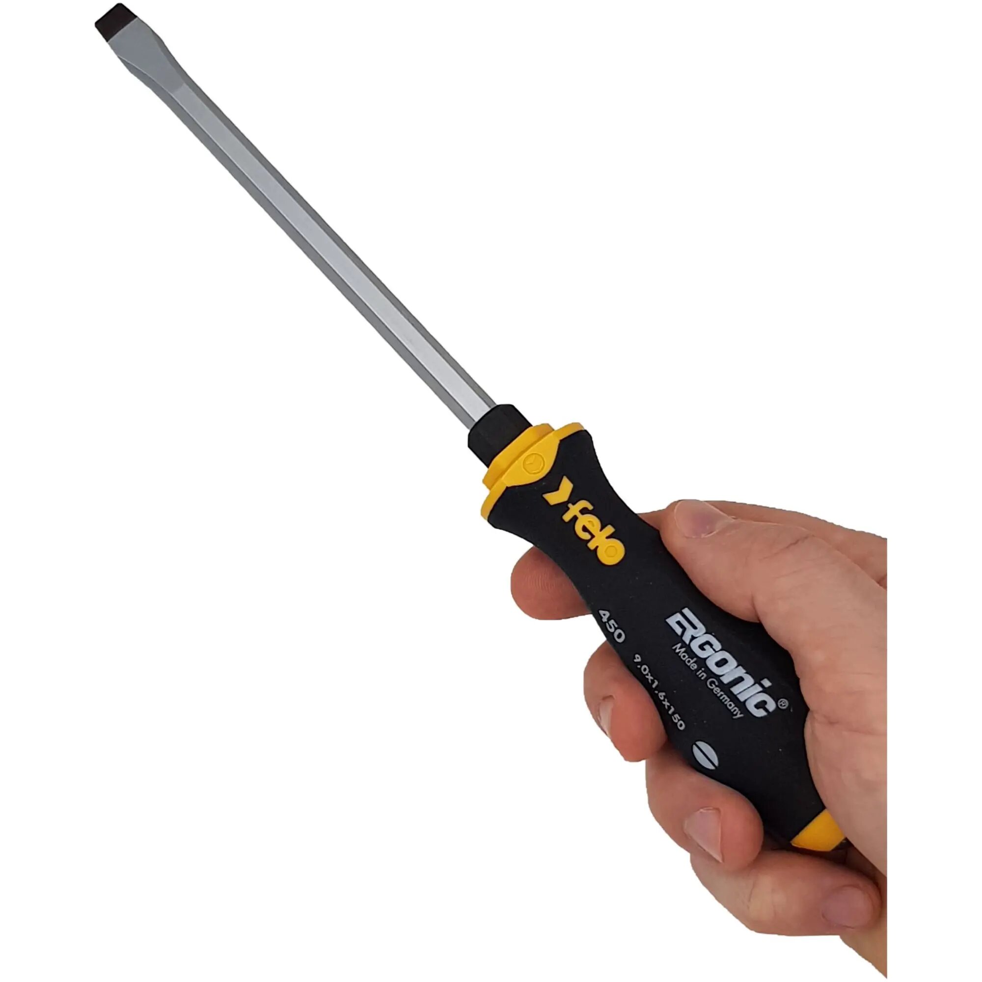 Плоская шлицевая ударная отвертка Felo Ergonic 9,0X1,6X150 45009040