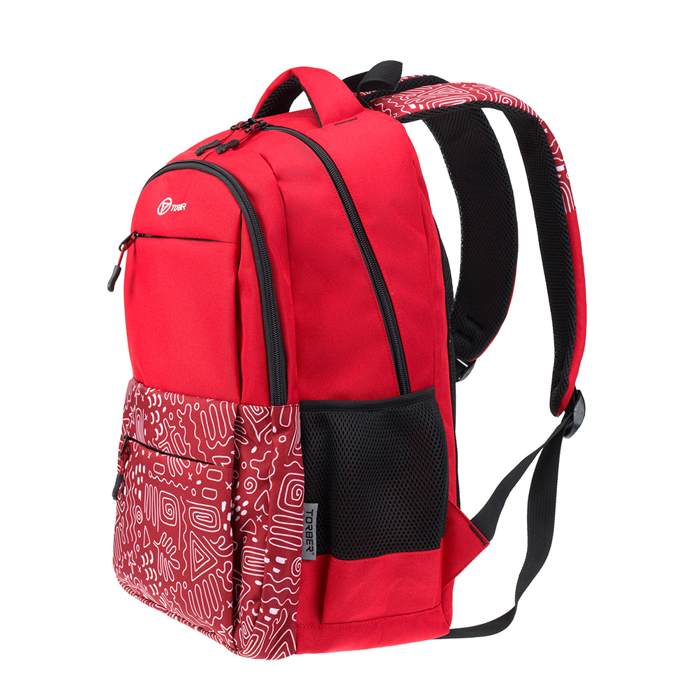 Купить Рюкзак TORBER CLASS X, красный с орнаментом, 45 x 30 x 18 см + Мешок для сменной обуви в подарок! TORBER MR-T2602-22-RED-M