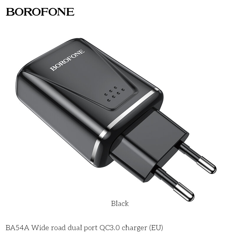 Блок питания сетевой 2 USB Borofone, BA54A, Wide, пластик огнестойкий, QC3.0, цвет: чёрный интересное: