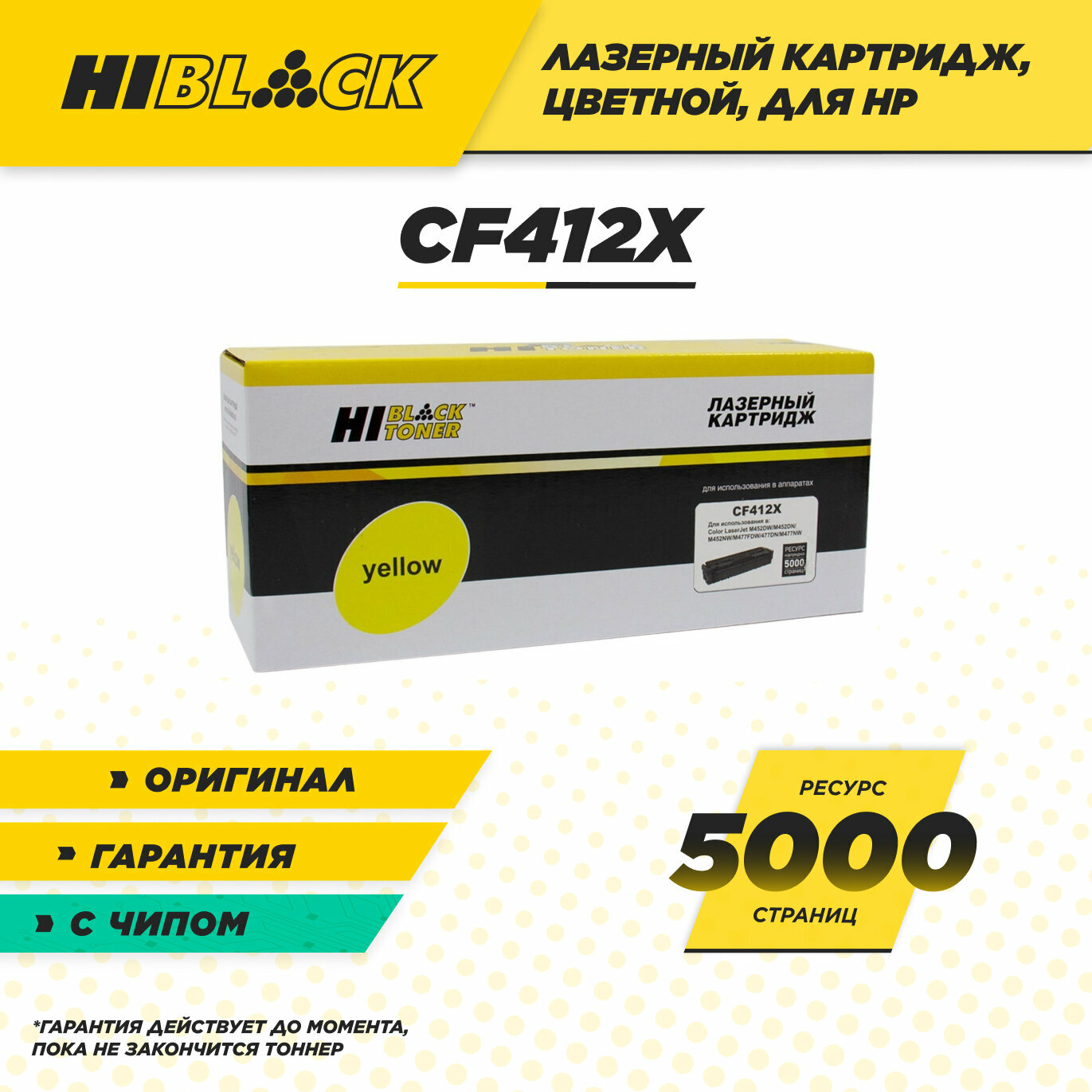 Картридж Hi-Black (HB-CF412X) для HP CLJ M452DW/DN/NW/M477FDW/477DN/477FNW, Y, 5K 989999277 .