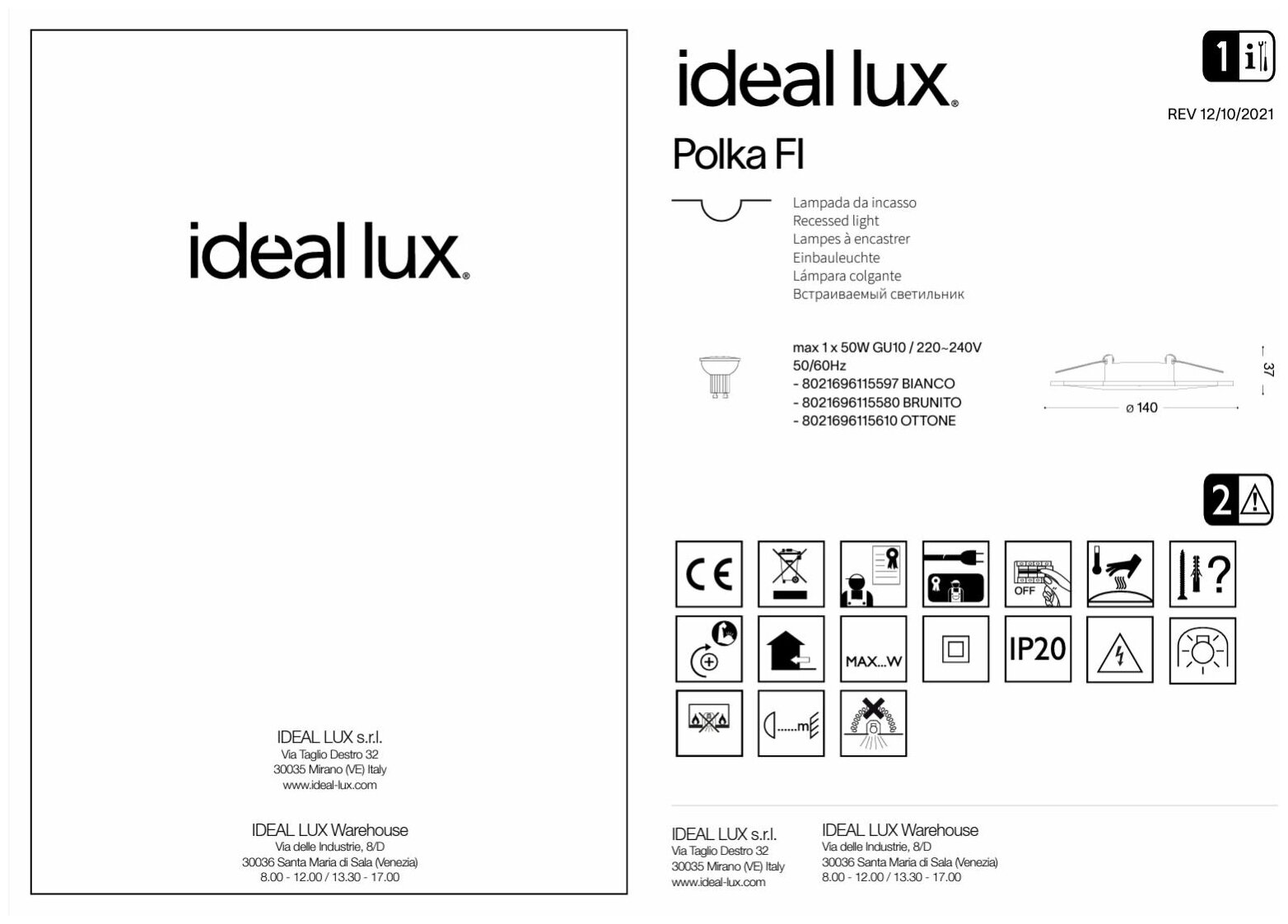 Ниже Вы можете прочитать отзывы на Светильник встраиваемый Ideal Lux Polka FI макс.1х50Вт IP20 GU10 230В Белый Гипс/Металл Без лампы 115597., ознакомится с подробными характеристиками, посмотреть интересные обзоры и фотографии на Светильник встраиваемый Ideal Lux Polka FI макс.1х50Вт IP20 GU10 230В Белый Гипс/Металл Без лампы 115597..