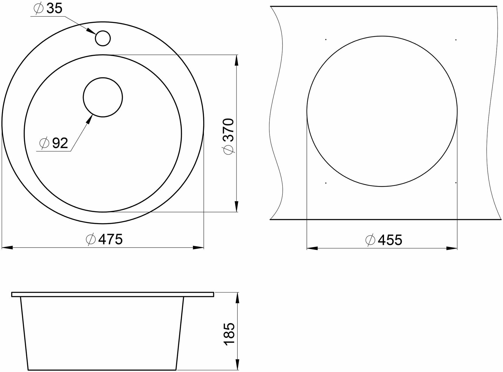 4801, алюминиум, мойка кухонная Granula круглая (D=475)*185 мм