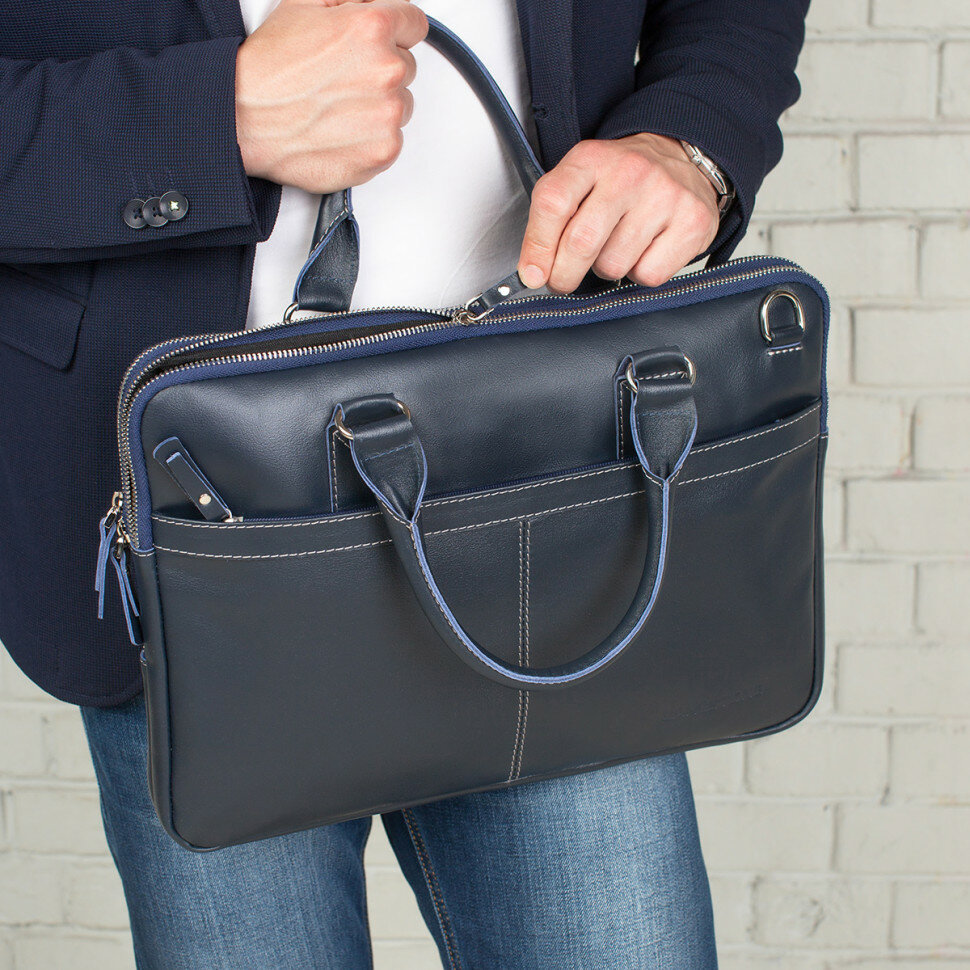 Деловая сумка Cromwell Dark Blue мужская кожаная синяя