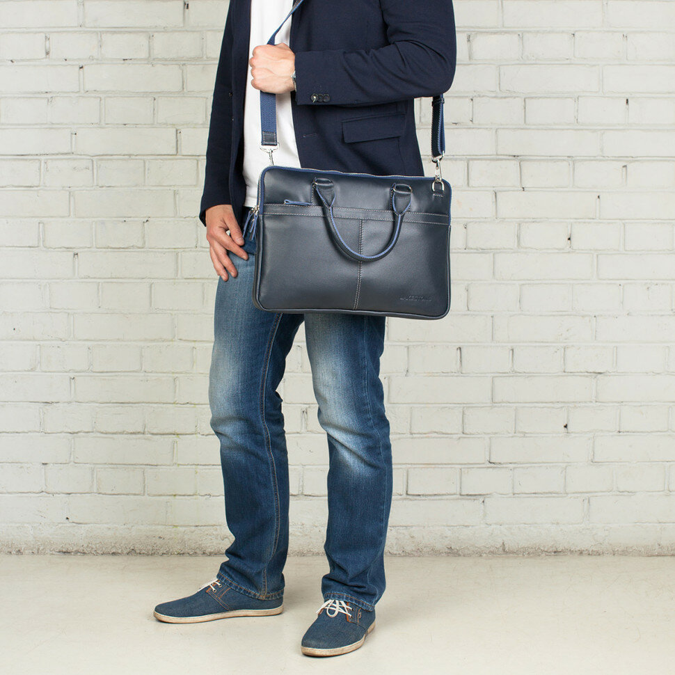 Мужская кожаная деловая сумка LAKESTONE Cromwell Dark Blue 923122/DB интересное: