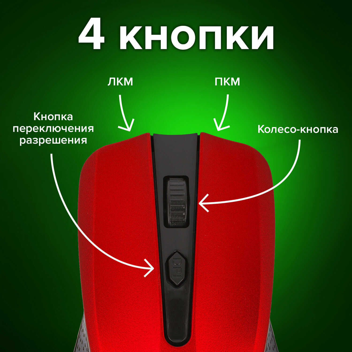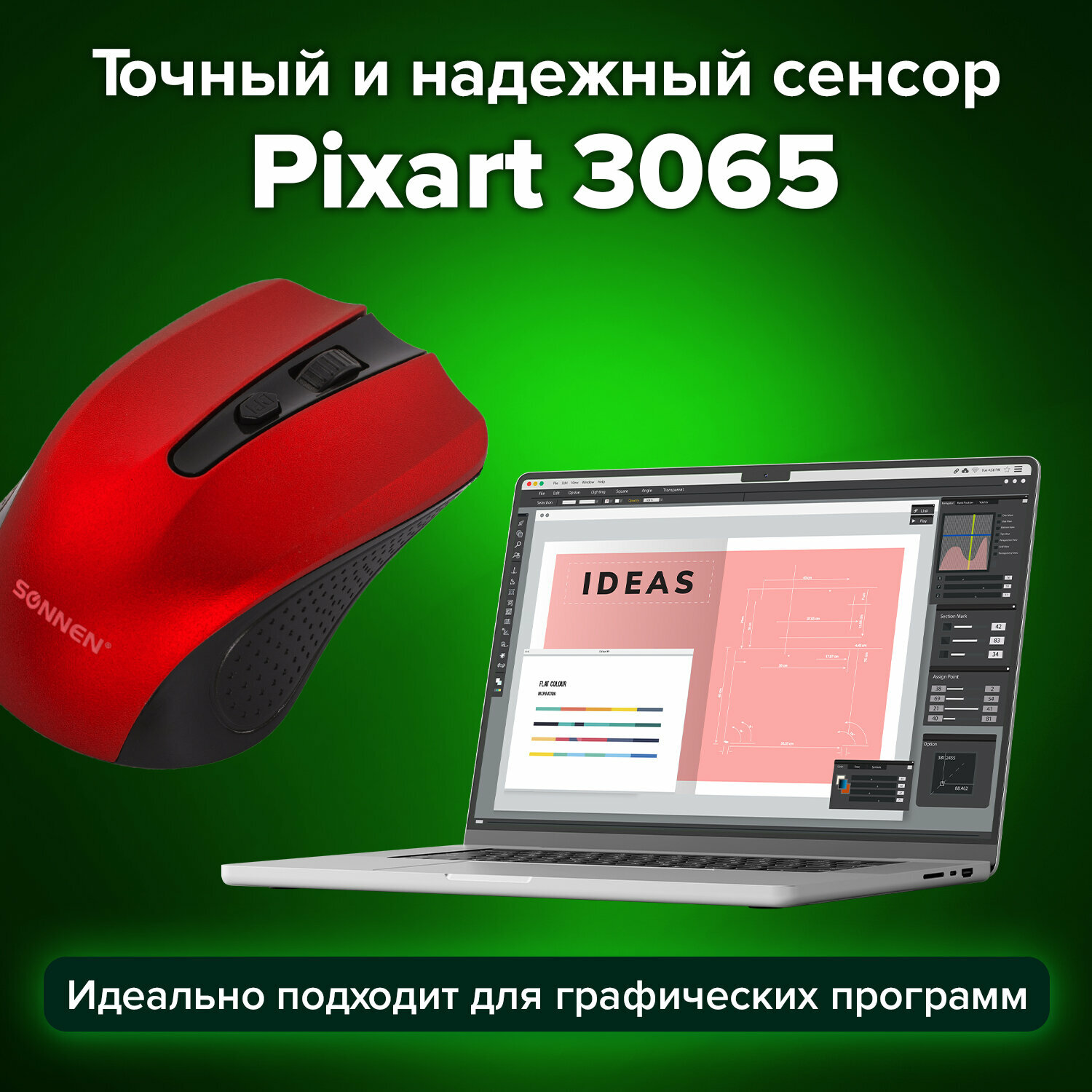 Мышь беспроводная SONNEN V99, USB, 1000/1200/1600 dpi, 4 кнопки, оптическая, красная,513529