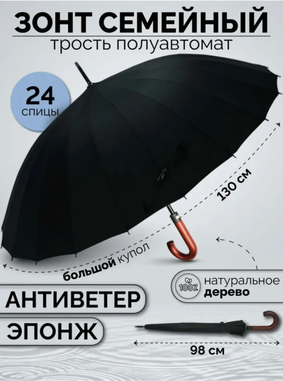 Зонт трость мужской полуавтомат, зонтик женский антиветер 800, 800, черный интересное: