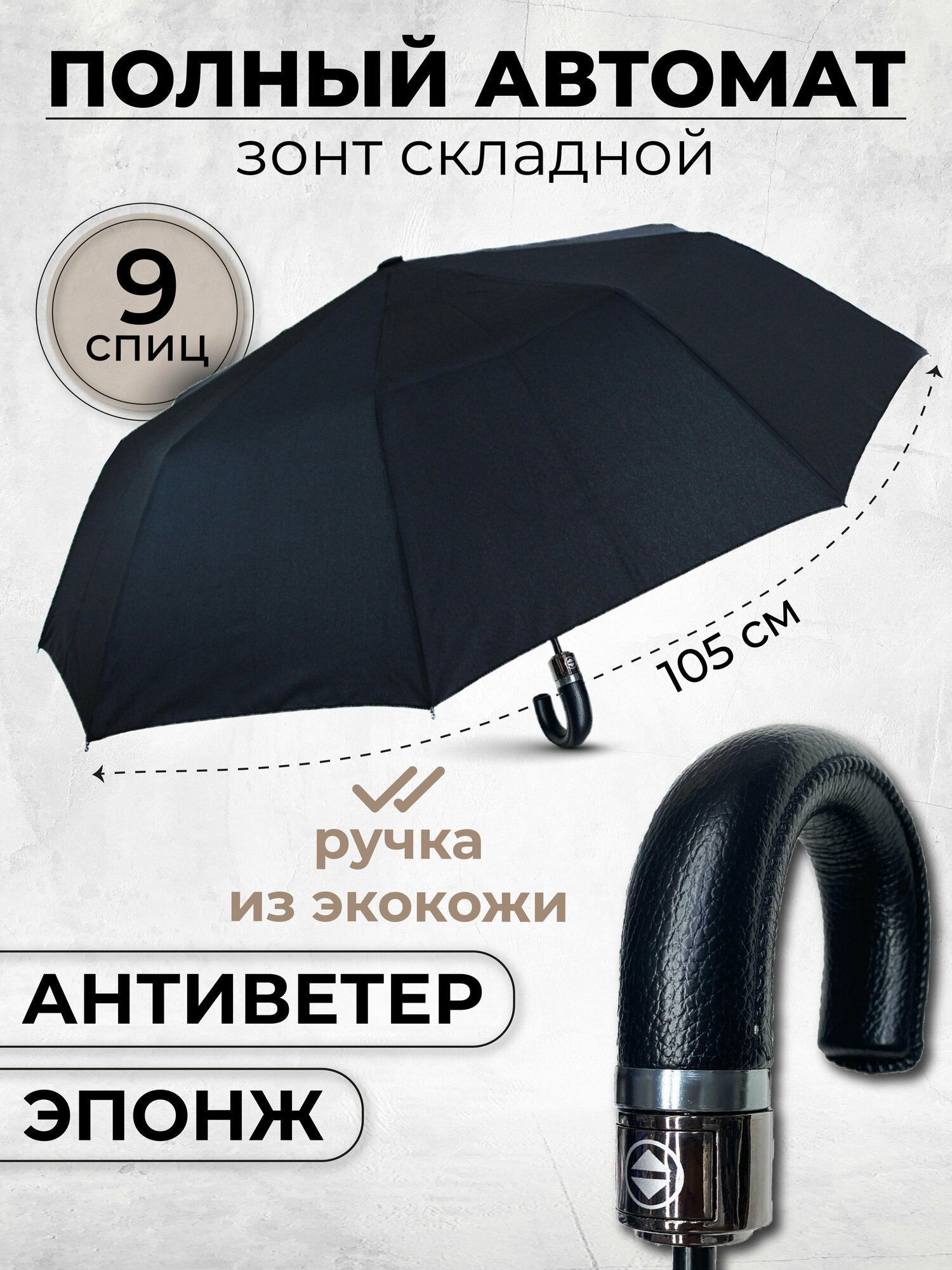 Зонт мужской автомат, зонтик женский складной антиветер L904, черный интересное: