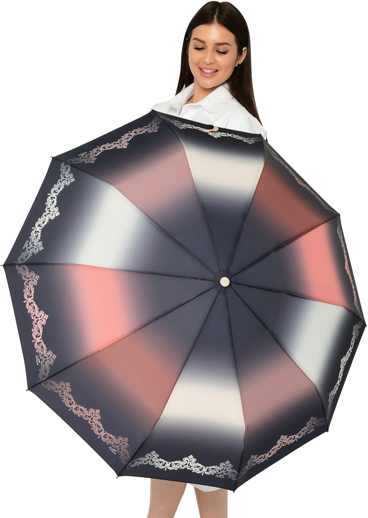 Зонт "Три Слона" женский №310-5, купол D=103 см, 10 спиц, суперавтомат бежево-черный