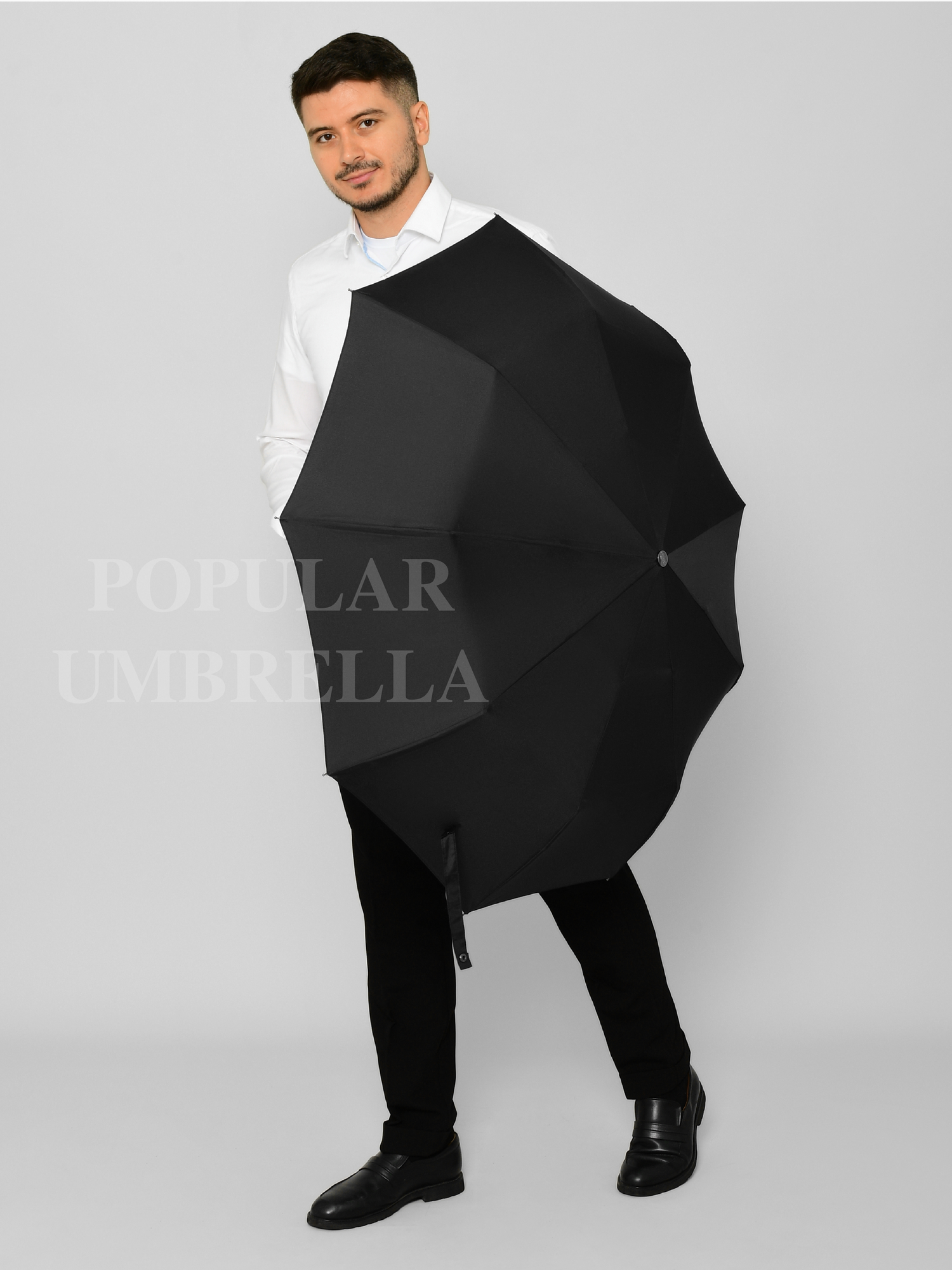 Мужской складной зонт Popular Umbrella автомат 1016L/Черный