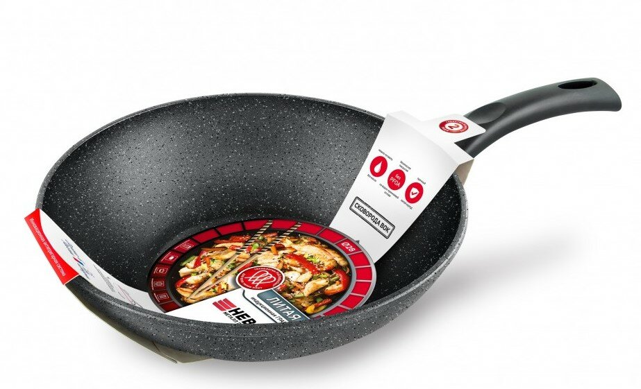 Сковорода-вок Нева Металл Посуда Eco Way антипригарная, литая, 26 см