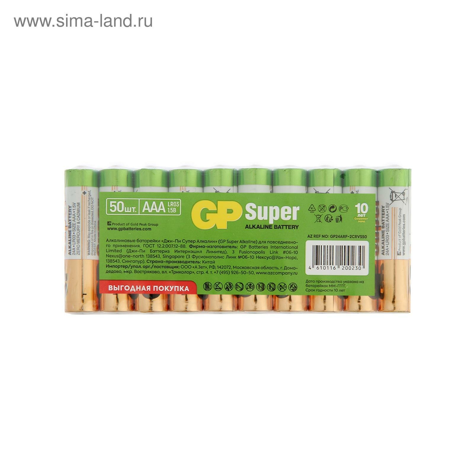 Купить Батарейка GP Super AAA (LR03) 24A алкалиновая, SB50, 50 штук, 308126