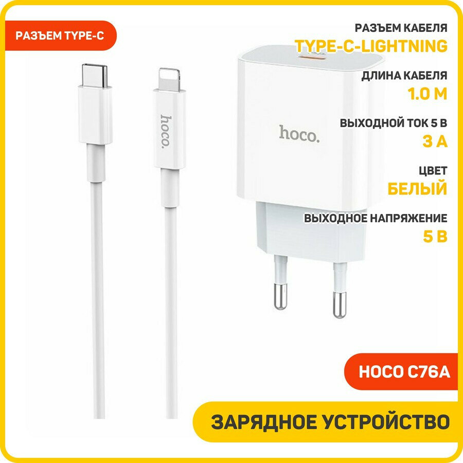 Купить Сетевое зарядное устройство (СЗУ) Hoco C76A (Type-C PD) + кабель Type-C-Lightning, 3 А, белый