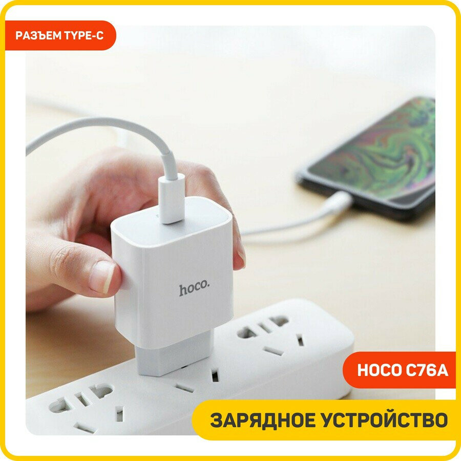 Сетевое зарядное устройство (СЗУ) Hoco C76A (Type-C PD) + кабель Type-C-Lightning, 3 А, белый интересное: