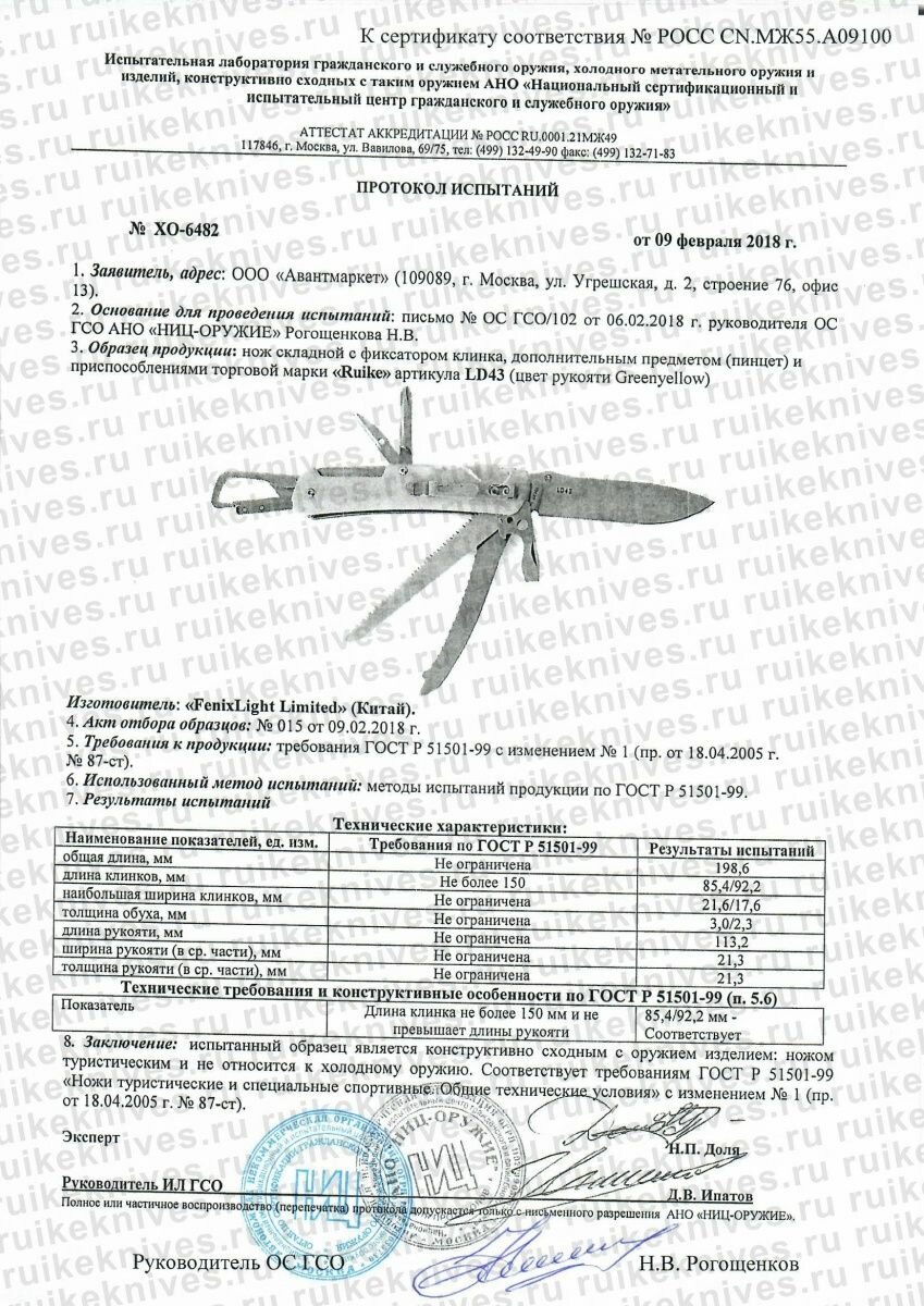 | Инструменты (функции) | нож / отвертка / открывалка для бутылок / пила / пинцет / шило / кернер |