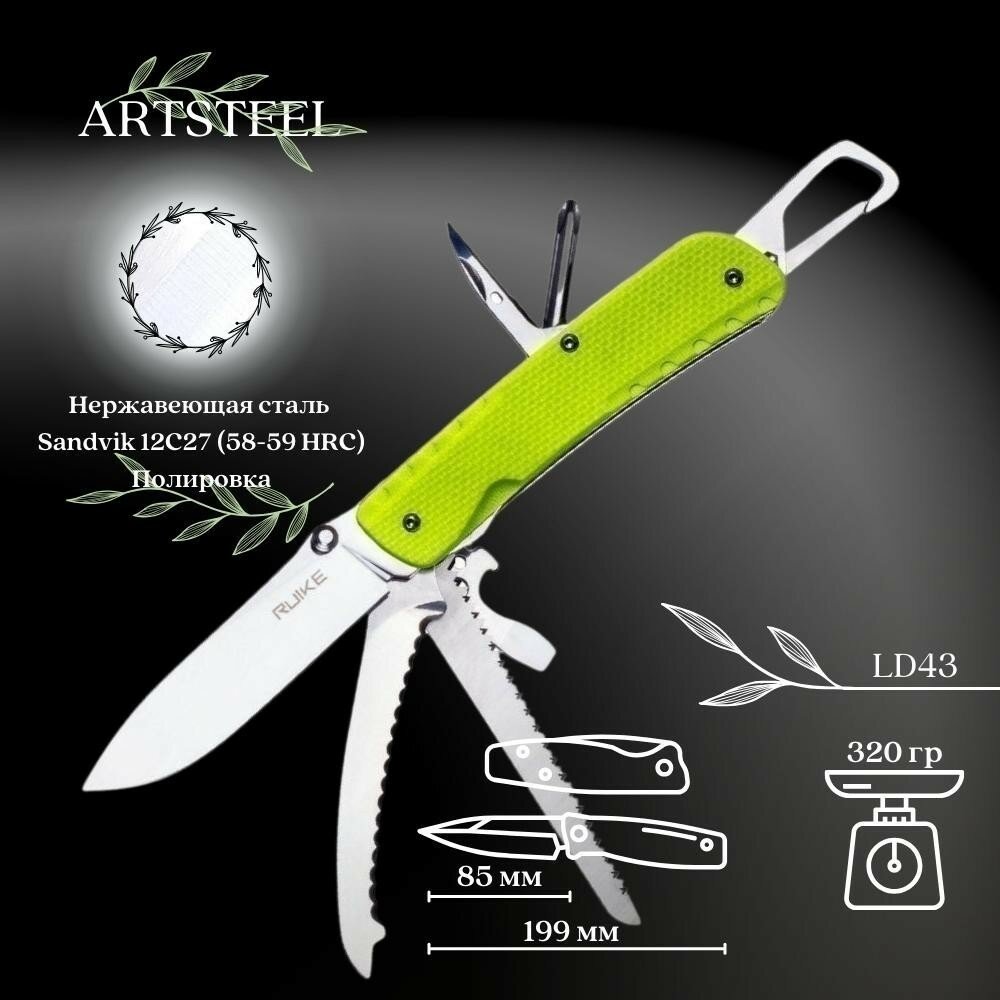 Нож Ruike LD43, 15 функций, желто-зеленый
