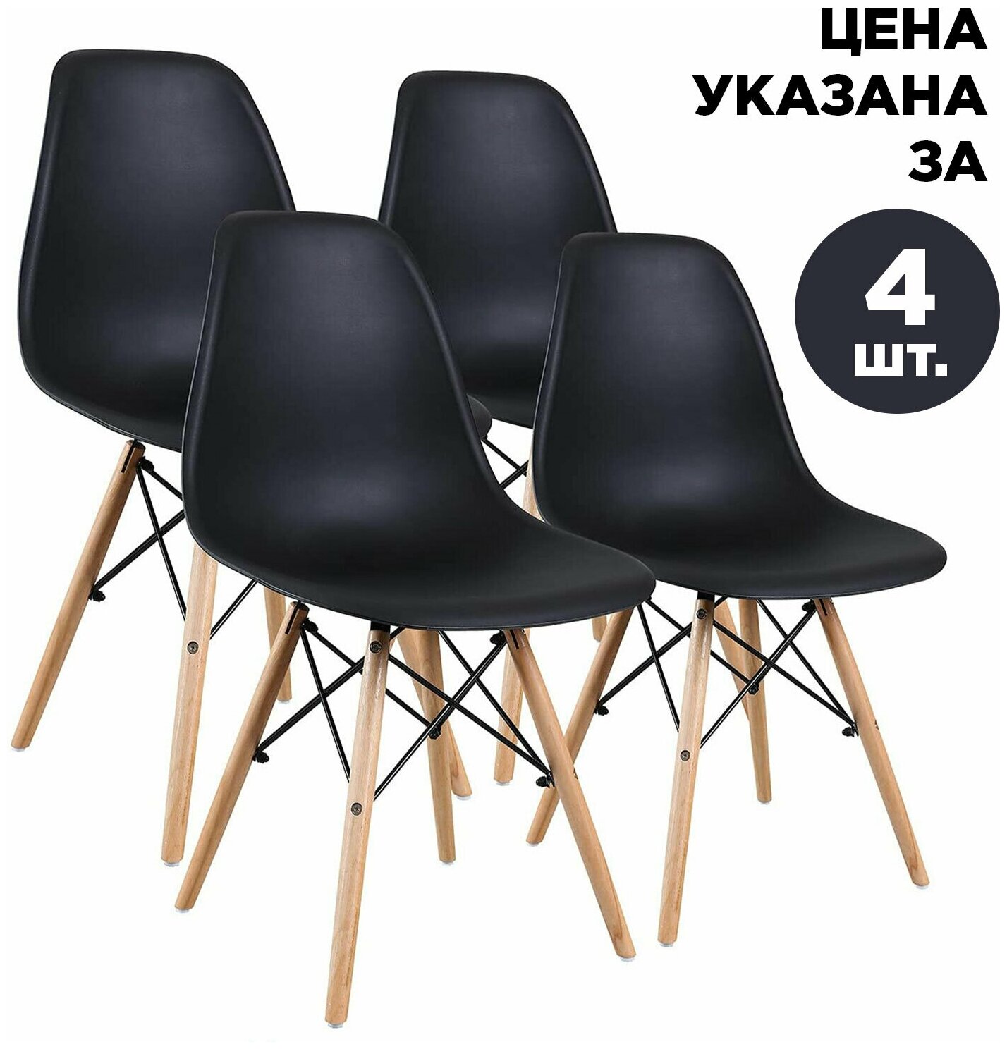 Стулья BRABIX Eames CF-010, комплект 4 шт., пластик черный, опоры дерево/металл, 532631, 2033A
