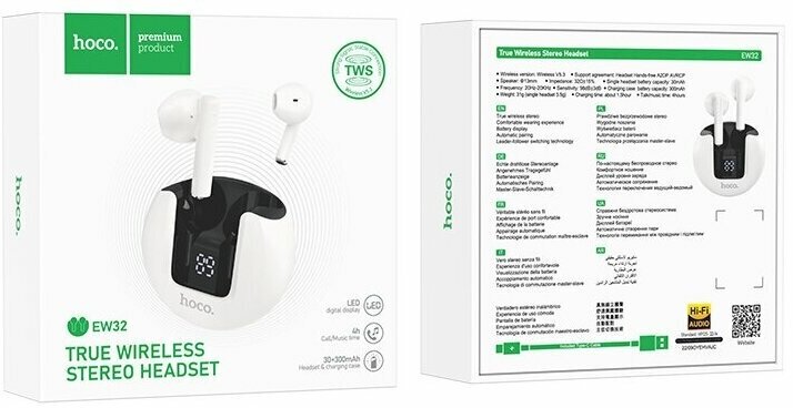 Беспроводные TWS наушники - гарнитура HOCO EW32, белые интересное: