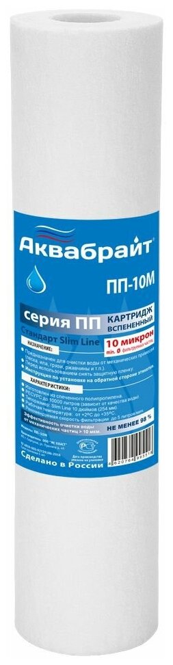 Магистральный фильтр 3/4" Аквабрайт АБФ-10-3/4" + ПП-с Картриджем 10М 10SL для очистки холодной воды Аквабрайт 3/4 интересное: