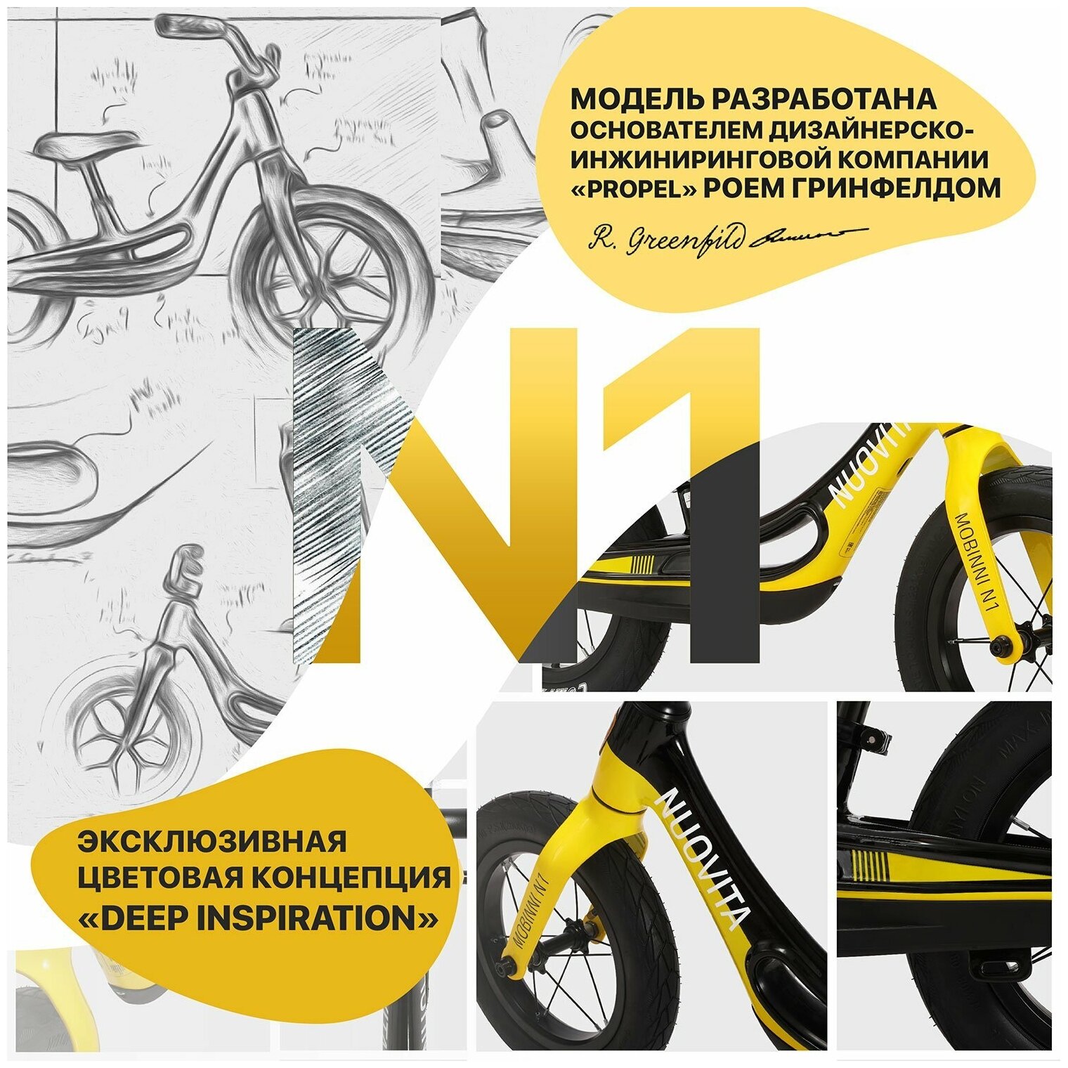 Беговел для детей Nuovita Mobinni N1 Nero Giallo/Черно-желтый интересное: