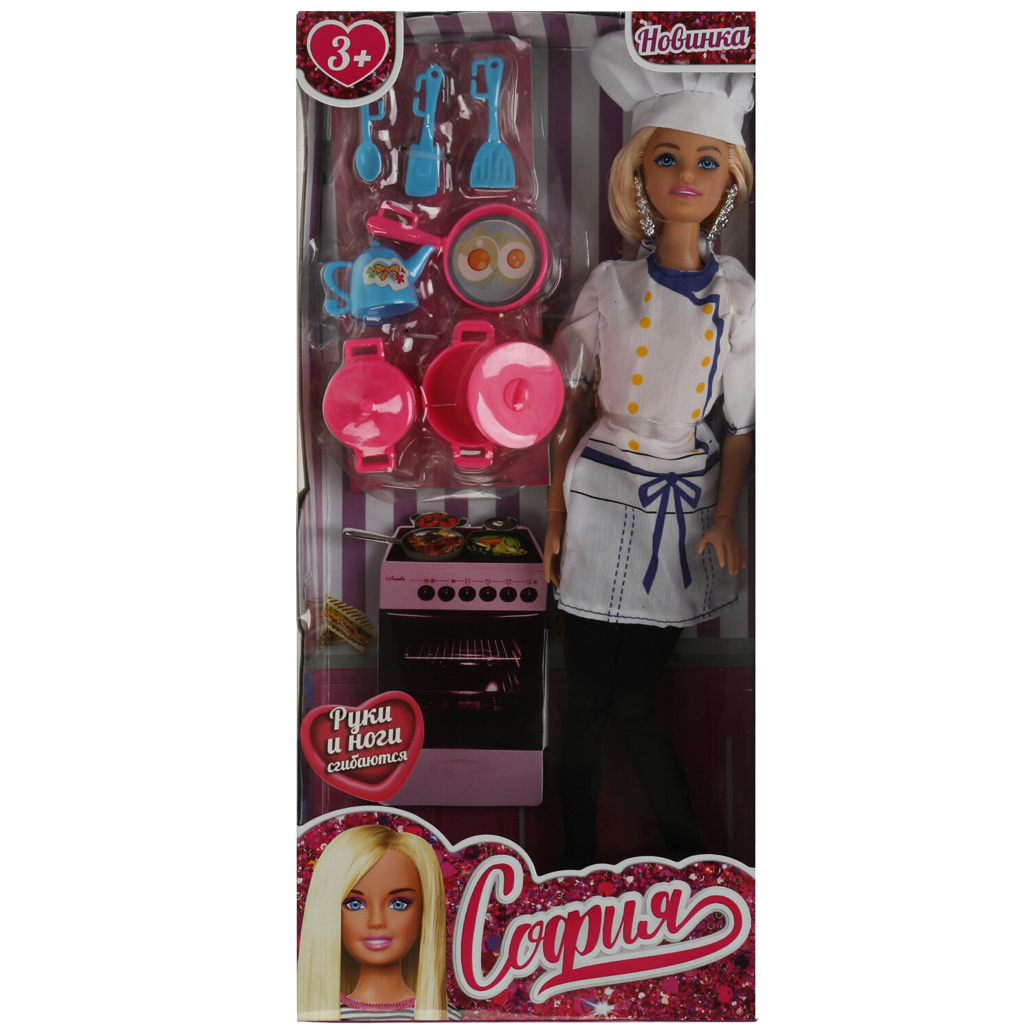 Купить Кукла 29 см София, руки и ноги сгиб, повар, акс, кор КАРАПУЗ24