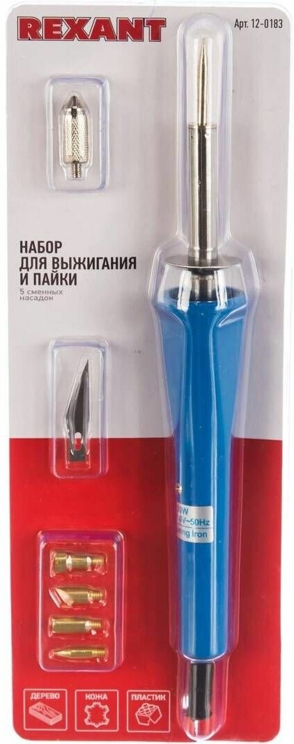 Паяльник-выжигатель REXANT - 6 сменных насадок, 30Вт, 220В, 1 набор интересное: