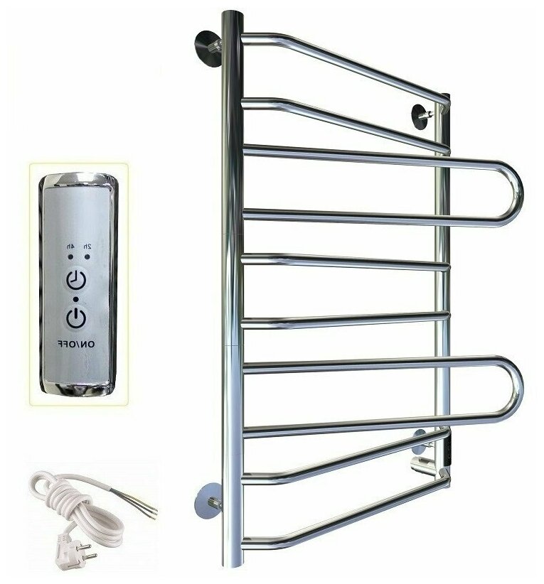 Купить Адамант полотенцесушитель электрический LUX 500х800 мм /8п/ прав, поворотный, хром, с терморегулятором, TermoSmart / ТермоСмарт, производство Россия