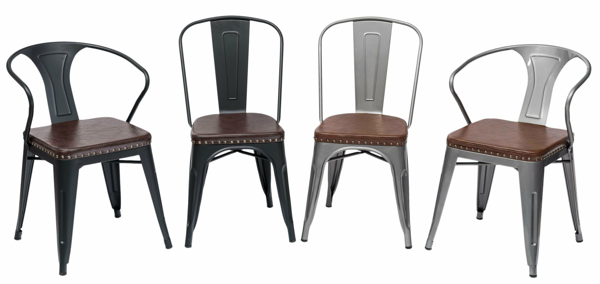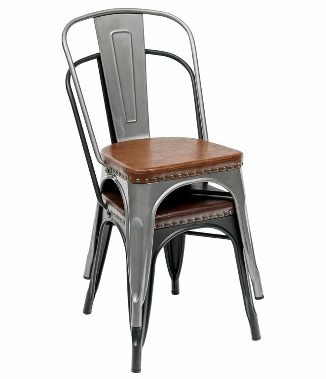 Стул Tolix SOFT STOOL GROUP серебряный, экокожа, металл, мягкое сиденье, без подлокотников