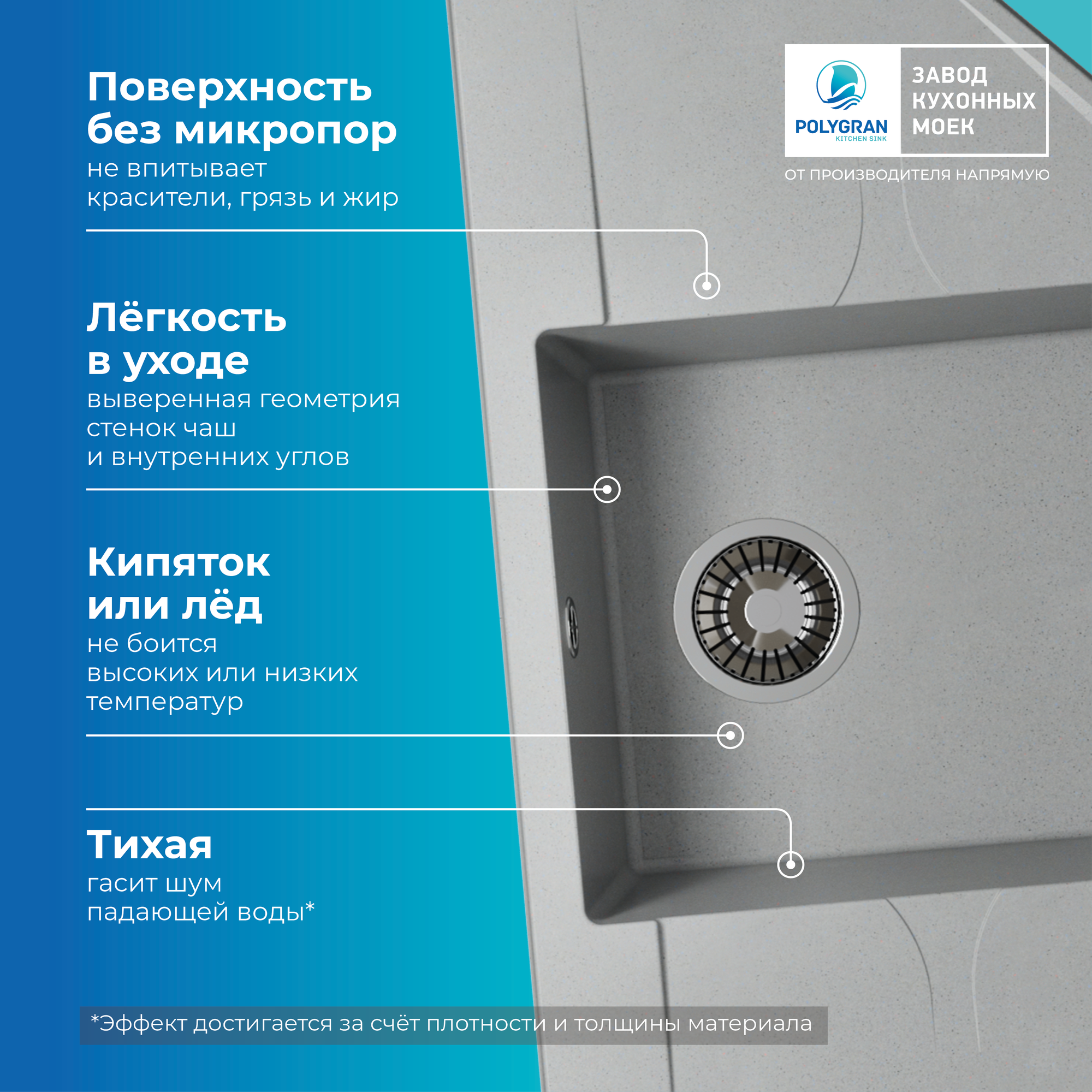 СохранитьКухонная мойка Polygran RIFF-800 (№14 Серый) интересное: