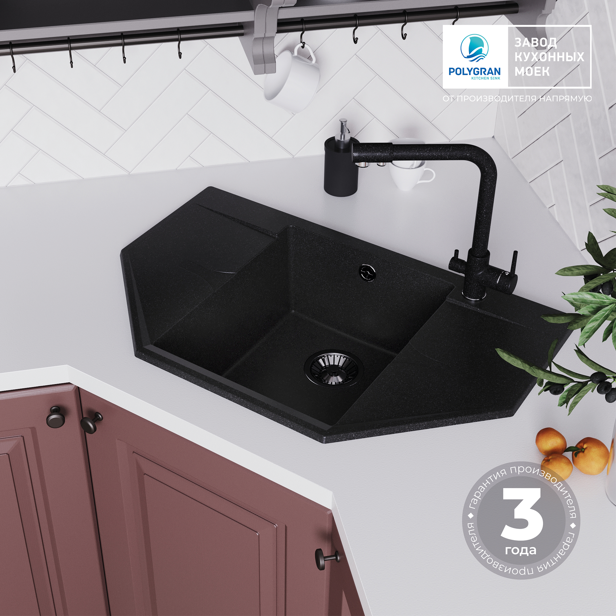 Мойка для кухни каменная POLYGRAN Riff-800, черная, врезная, с крылом (№16 Черный)