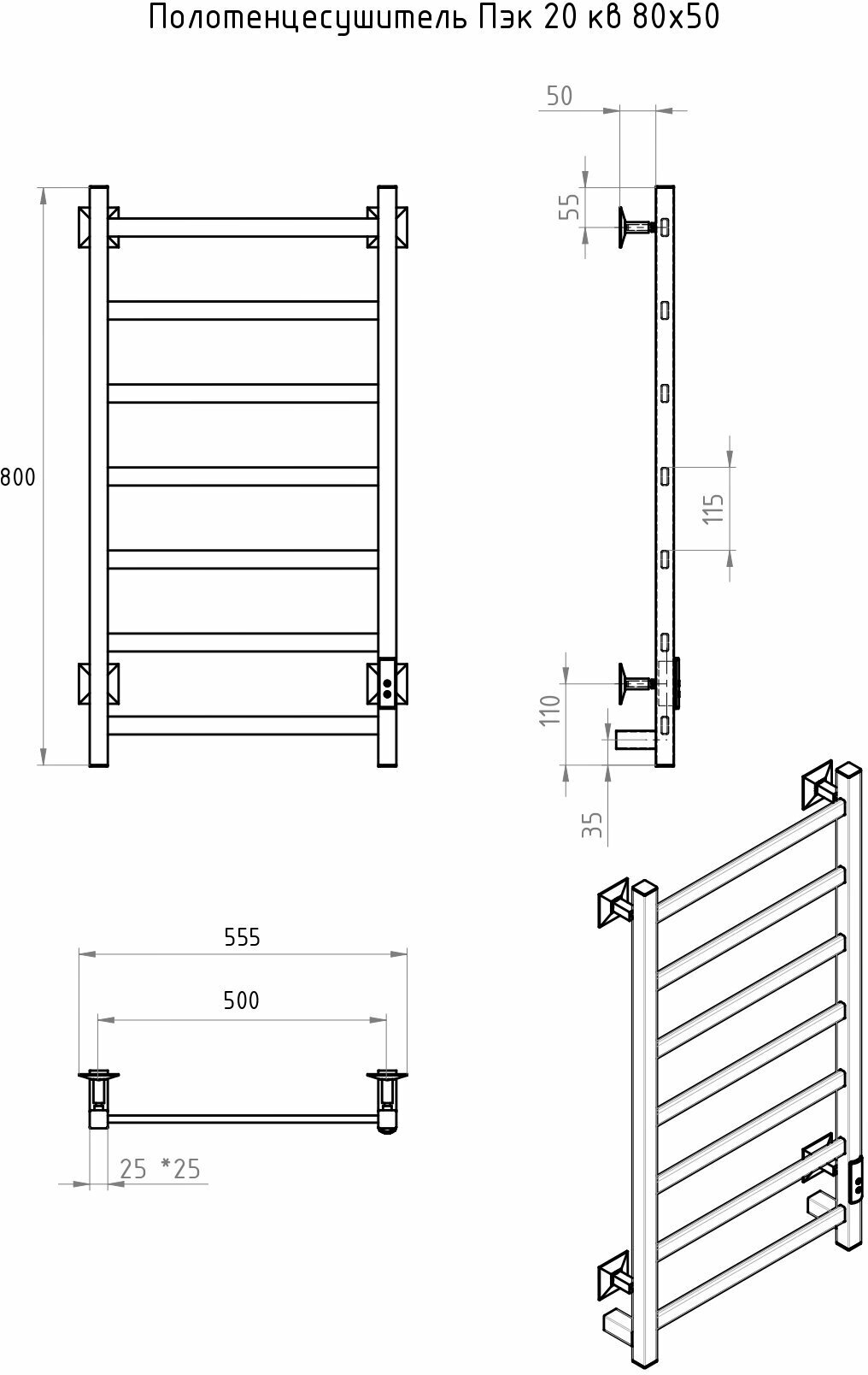 Полотенцесушитель Электрический Тругор Пэк сп 5 П 60х50 черный ВГП