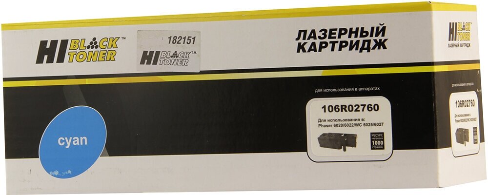 Тонер-картридж Hi-Black 106R02760 для Xerox Phaser 6020/6022/ WC 6025/6027, C, 1K, голубой, 1000 страниц