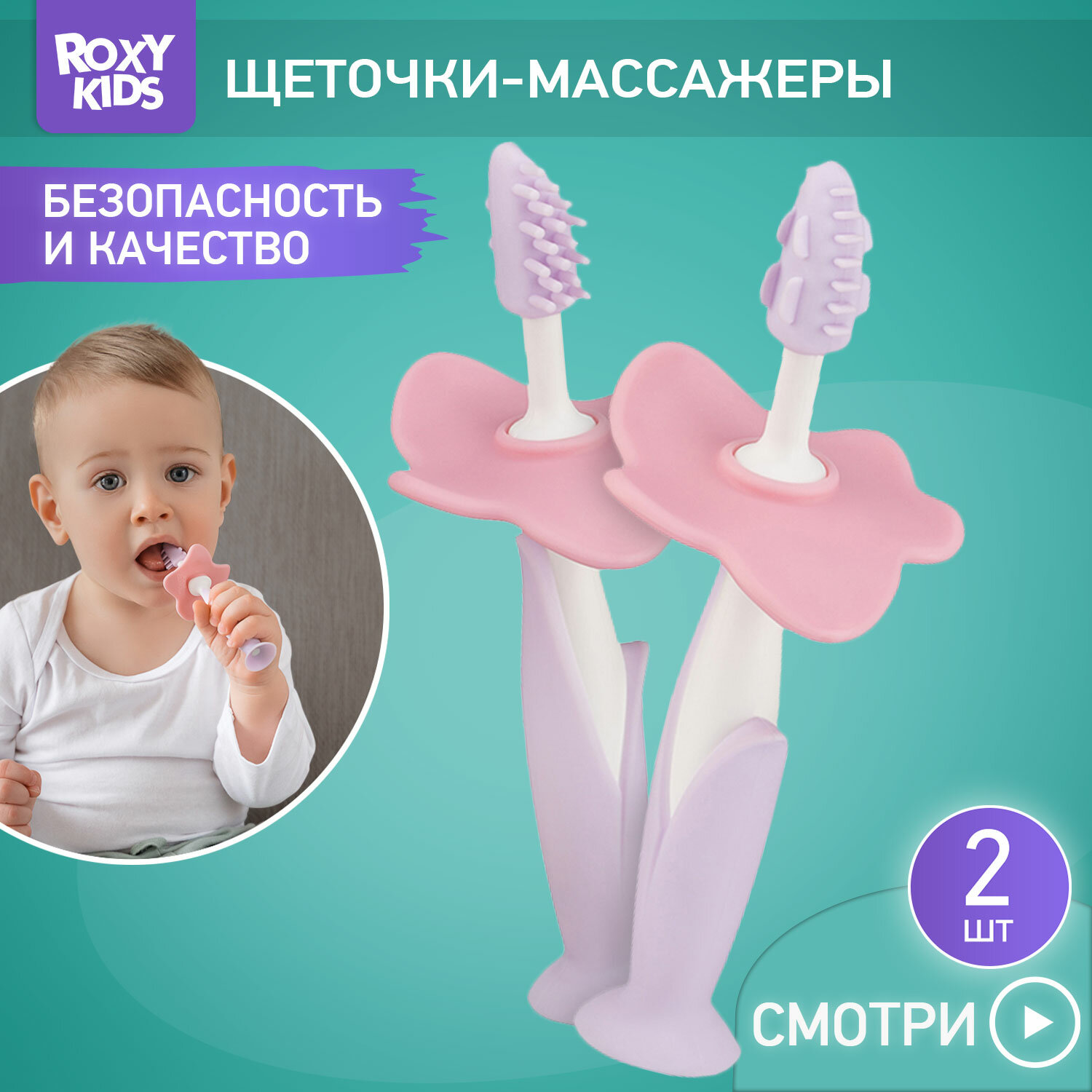 Купить ROXY-KIDS Щетки детские зубные массажер для десен FLOWER от ROXY-KIDS 2 шт, цвет сиреневый