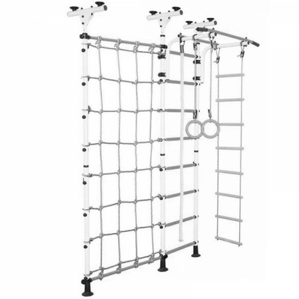 Шведская стенка Юный Атлет «Распорный с сеткой для лазания», цвет Бело-серый