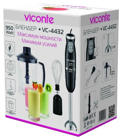 Блендер VICONTE VC-4432 4-ножа 950Вт 3в1 черный интересное: