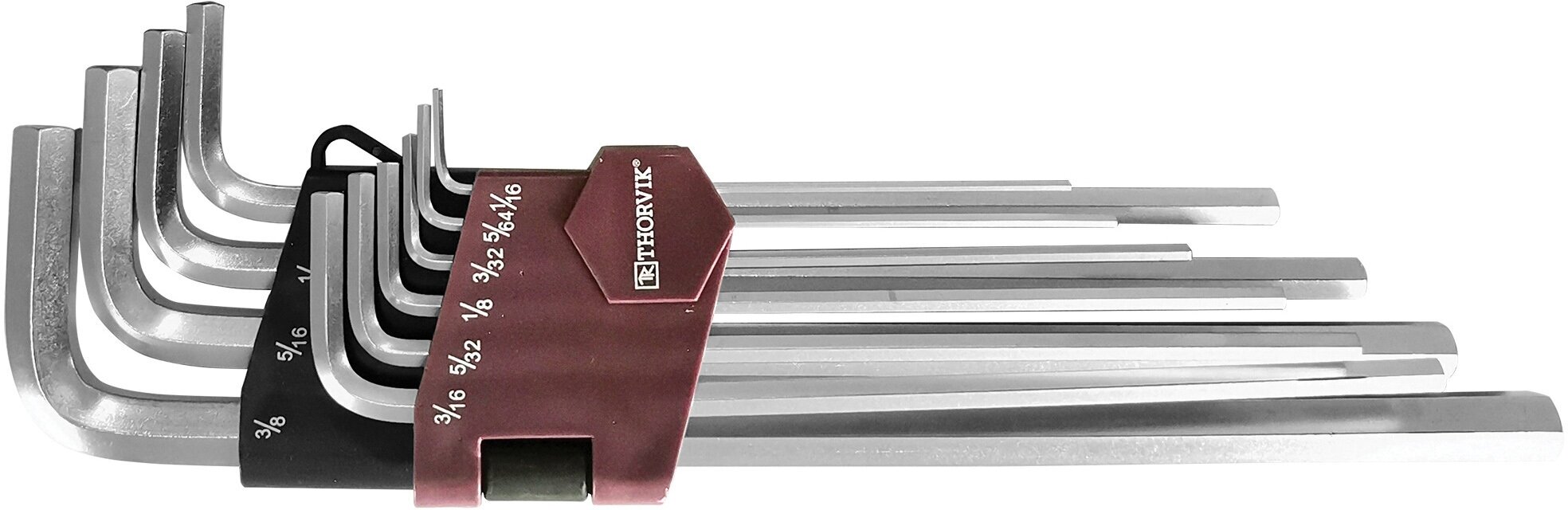Набор ключей имбусовых, шестигранник, HKIL10S, 10 предметов, Thorvik, 1/16-3/8 '', удлиненные, 53099
