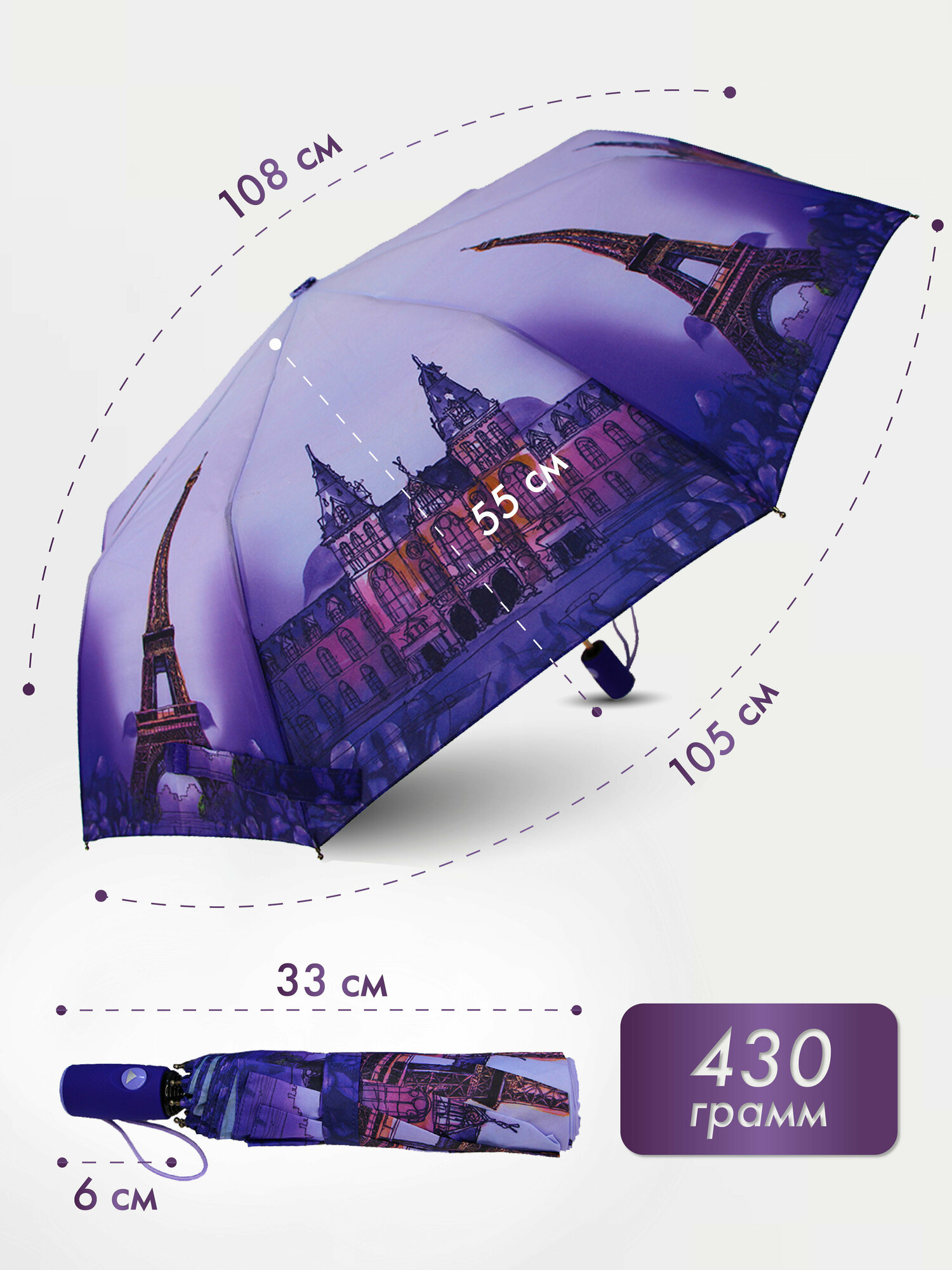 | Плюсы: | Красивый зонт, большой купол |