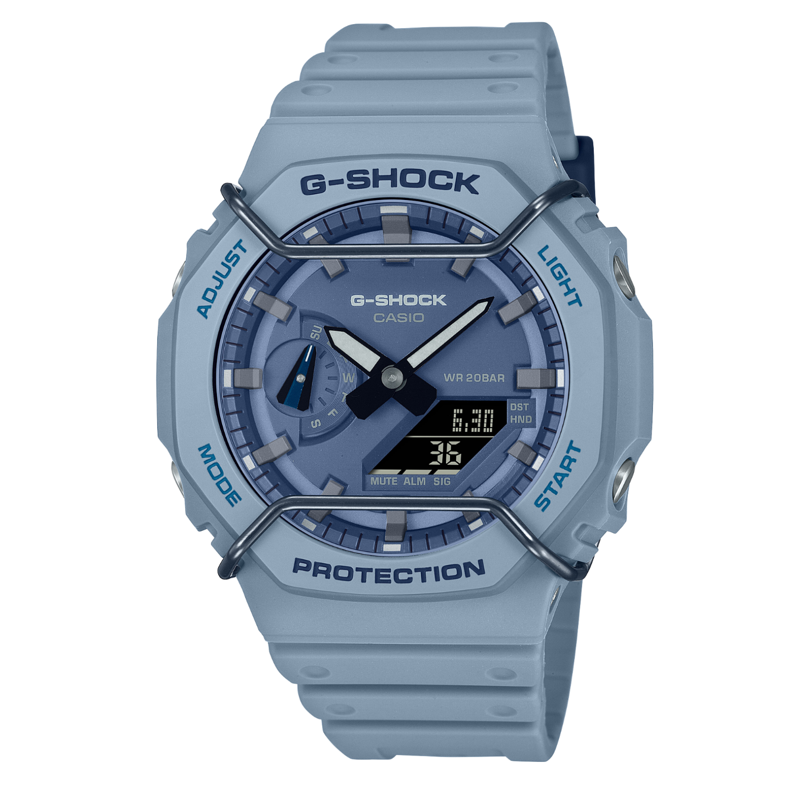 Наручные часы CASIO G-Shock Наручные часы Casio GA-2100PT-2A мужские, кварцевые, будильник, хронограф, секундомер, таймер обратного отсчета, водонепроницаемые, противоударные, серый, голубой