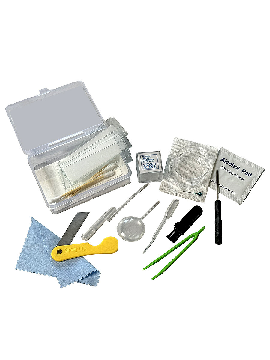 | Подробная комплектация | Микроскоп в сборе с поворотной бинокулярной насадкой; Парные окуляры 16мм: WF10 – 2 шт, WF50 – 2 шт; Ахроматические объективы: 4x/0.1, 10x/0.25, 40x/0.65; Набор готовых микропрепаратов из 30 образцов в жестком футляре; Универсальный держатель для смартфона – 1 шт; Цифровая USB камера (видеоокуляр) – 1 шт; Окулярная насадка с LCD монитором 5" – 1 шт; Линза Барлоу 3х – 2 шт; Адаптер питания 220В на USB для микроскопа; USB кабель питания для микроскопа; USB кабель питания для LCD монитора; CD диск с программой для работы на ПК. Аксессуары для приготовления собственных образцов: пипетка; пинцет; 2 сухие и 2 спиртовые салфетки; Игла; Скальпель; кисточка; 5 предметных стекол; 100 покровных стекол; флакон с морской солью; флакон с артемией; пустой флакон с крышкой; Текстильный кейс с пенопластовым наполнением для хранения и переноски; Документация; Упаковочная коробка. |