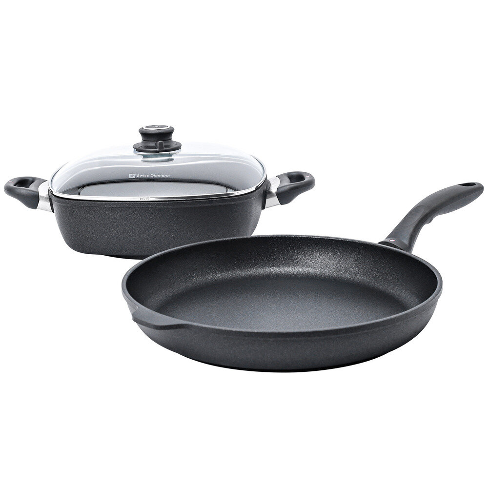 Набор алюминиевой посуды с алмазным покрытием из сотейника со стеклянной крышкой и сковороды, Черный Swiss Diamond XD Classic+ Induction