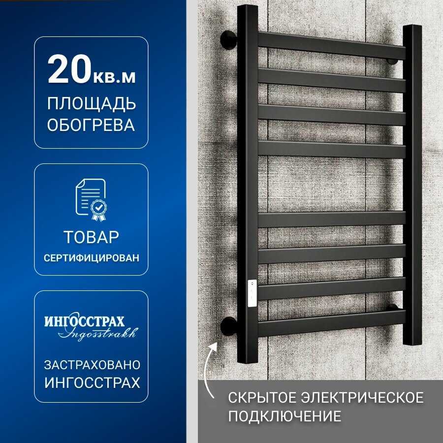 Полотенцесушитель электрический Маргроид черный В81/10 80 на 50 без полки, таймер, скрытое универсальное подключение. интересное: