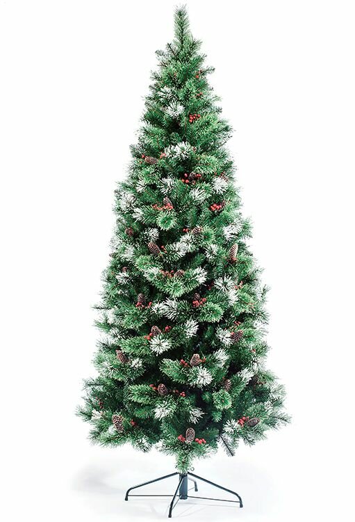 Искусственная елка Фьюжн заснеженная 180 см с ягодами и шишками, леска + ПВХ, царь елка ФЗЕ-180