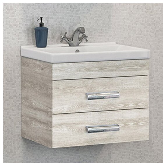 COMFORTY. Тумба-умывальник "Никосия-60П" дуб белый с раковиной Fest 60 F01