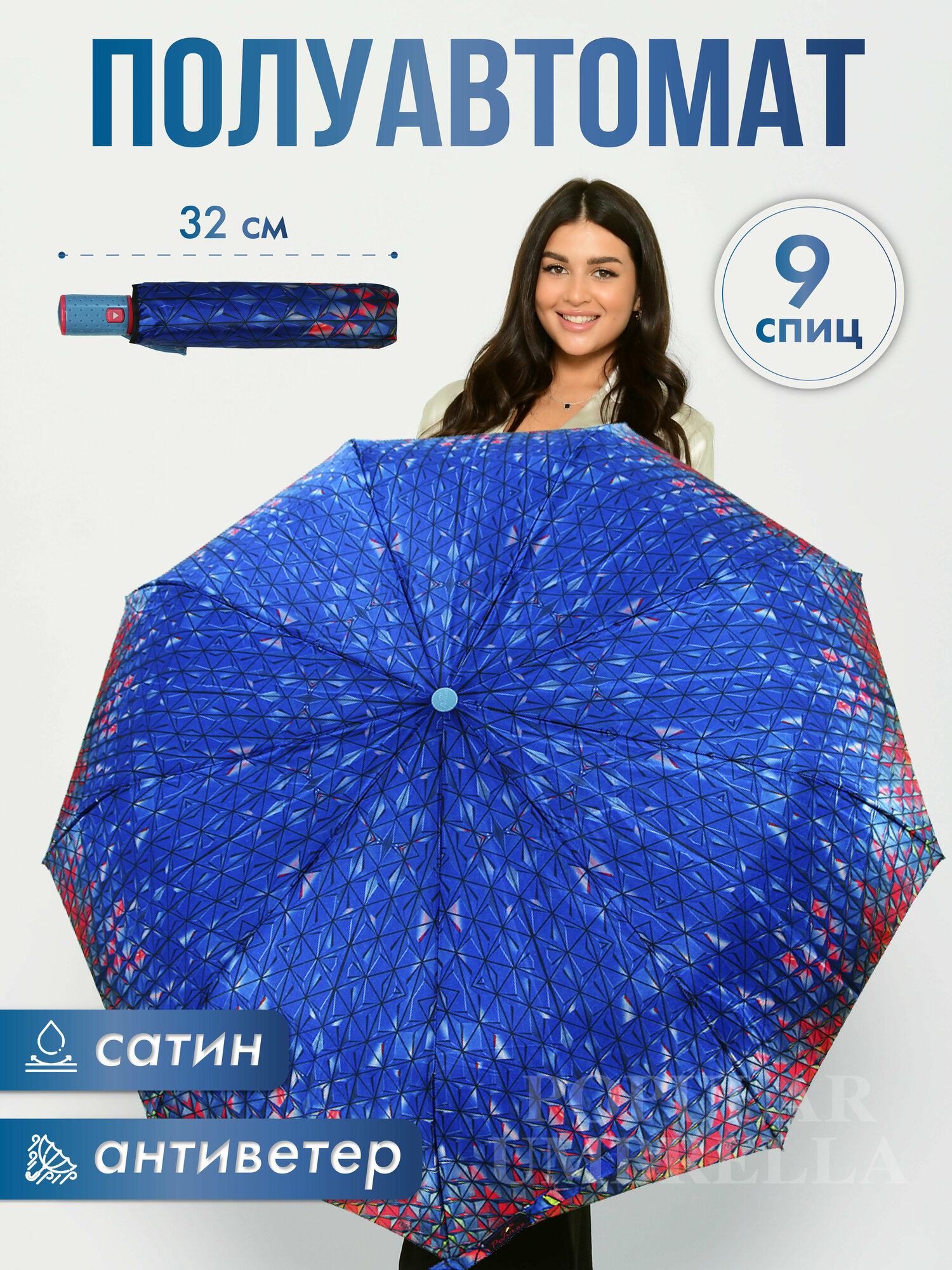СохранитьЗонт женский полуавтомат, зонтик взрослый складной антиветер 1289, синий интересное: