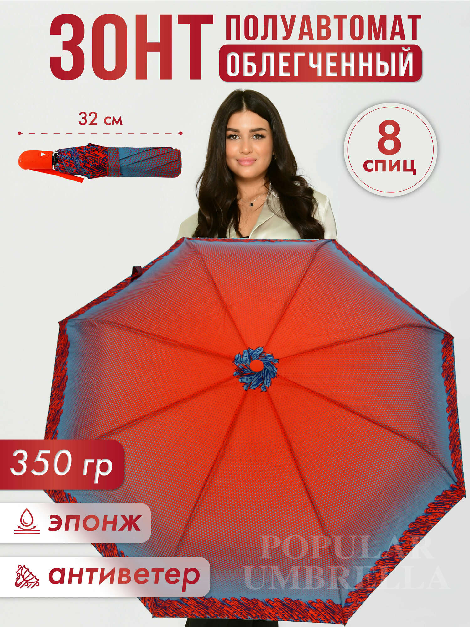 Женский складной зонт RAINBRELLA полуавтомат 153J/красный,голубой