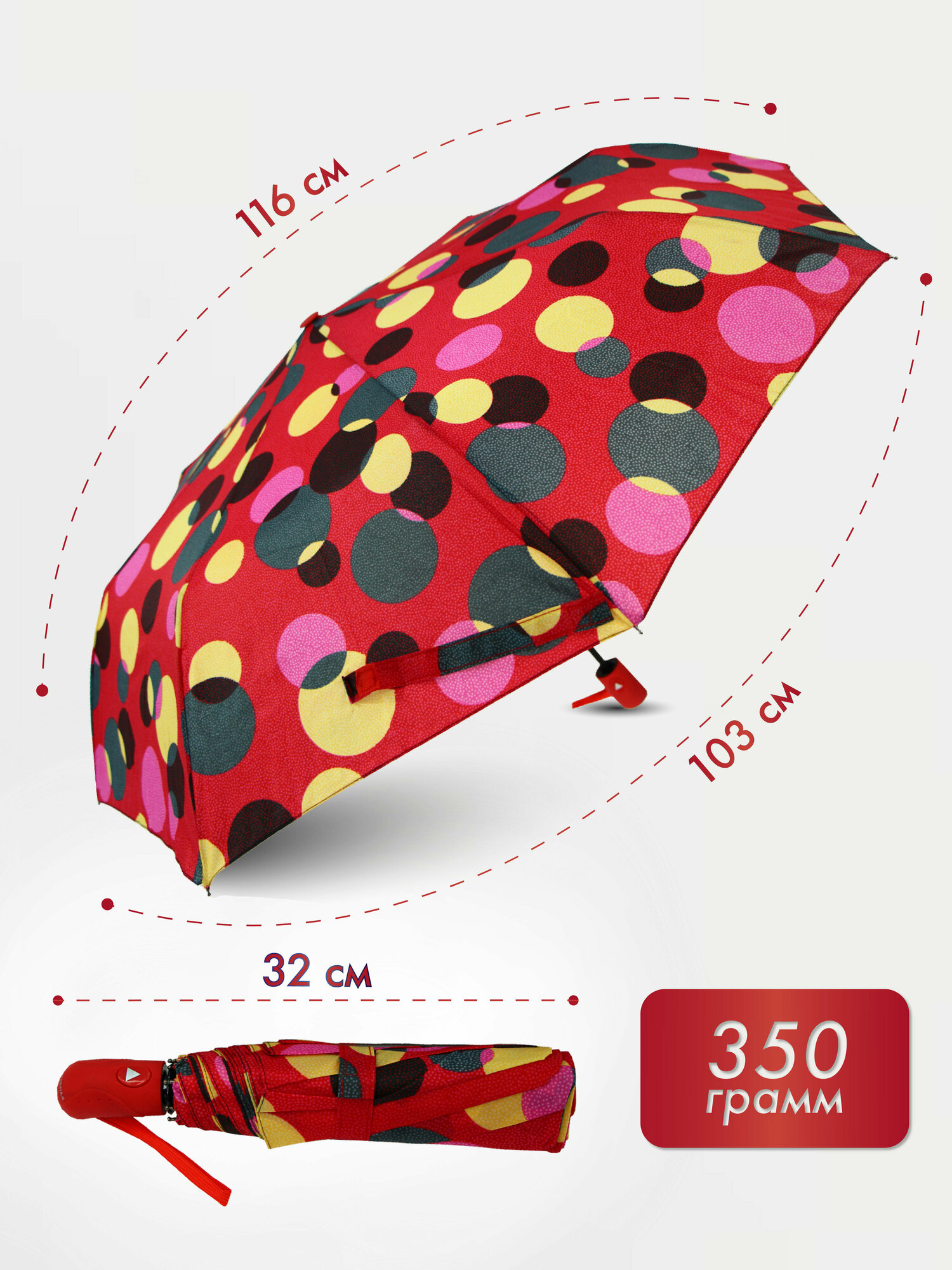 Женский складной зонт RAINBRELLA полуавтомат 153J/красный,голубой