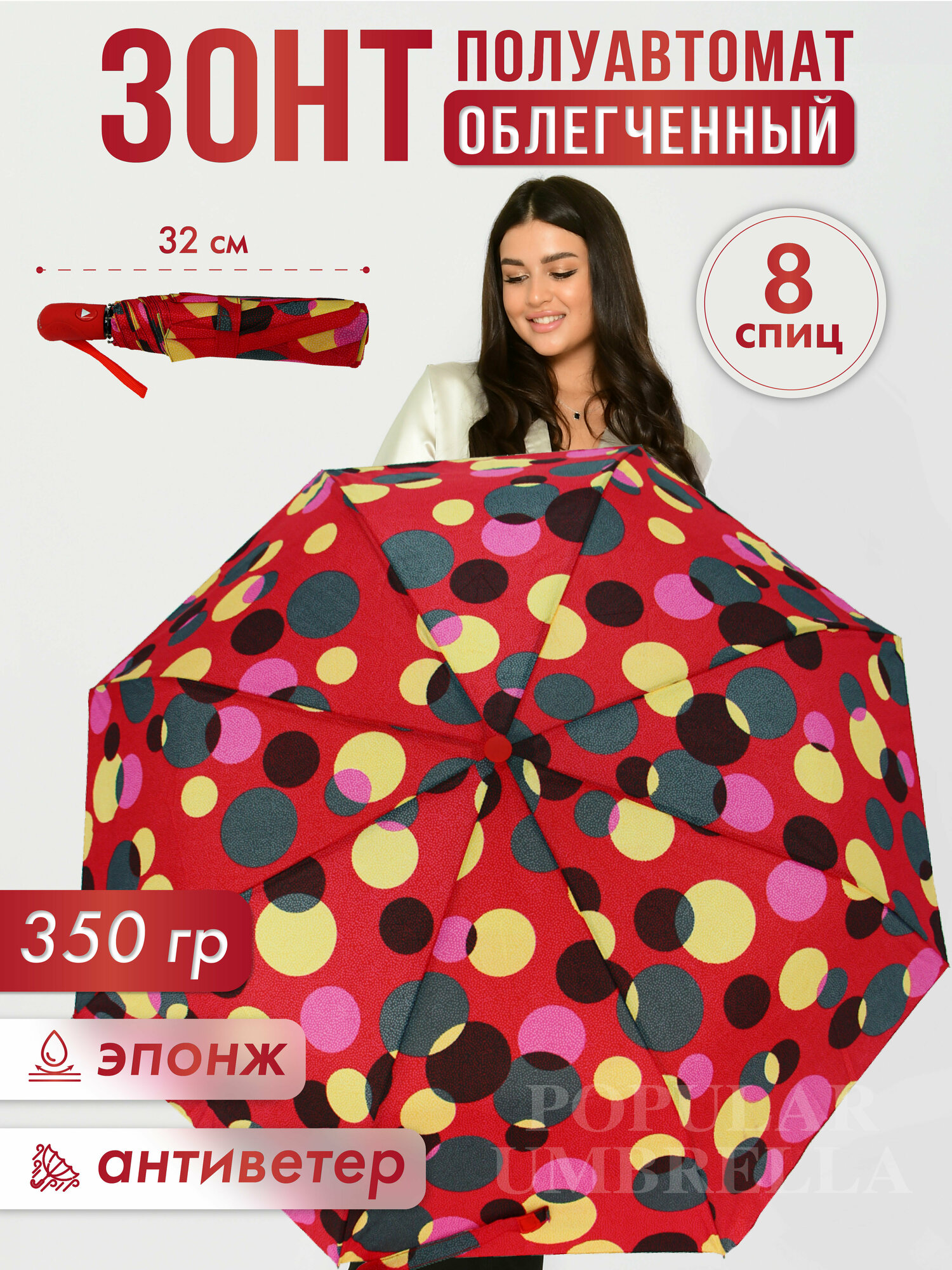 СохранитьЗонт женский полуавтомат, зонтик взрослый складной антиветер 153J, красный интересное:
