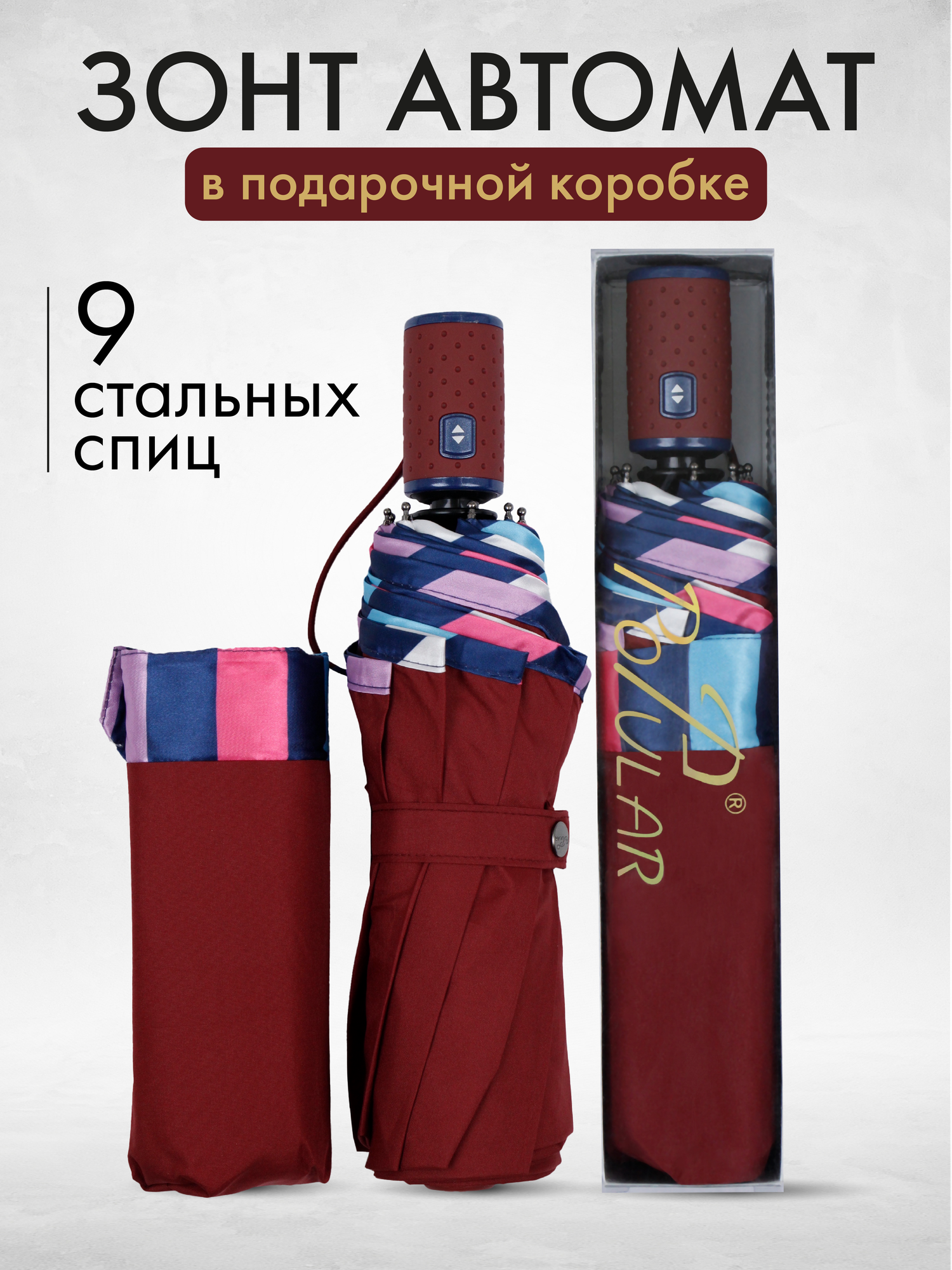 Женский складной зонт Popular umbrella автомат 2111/бордовый