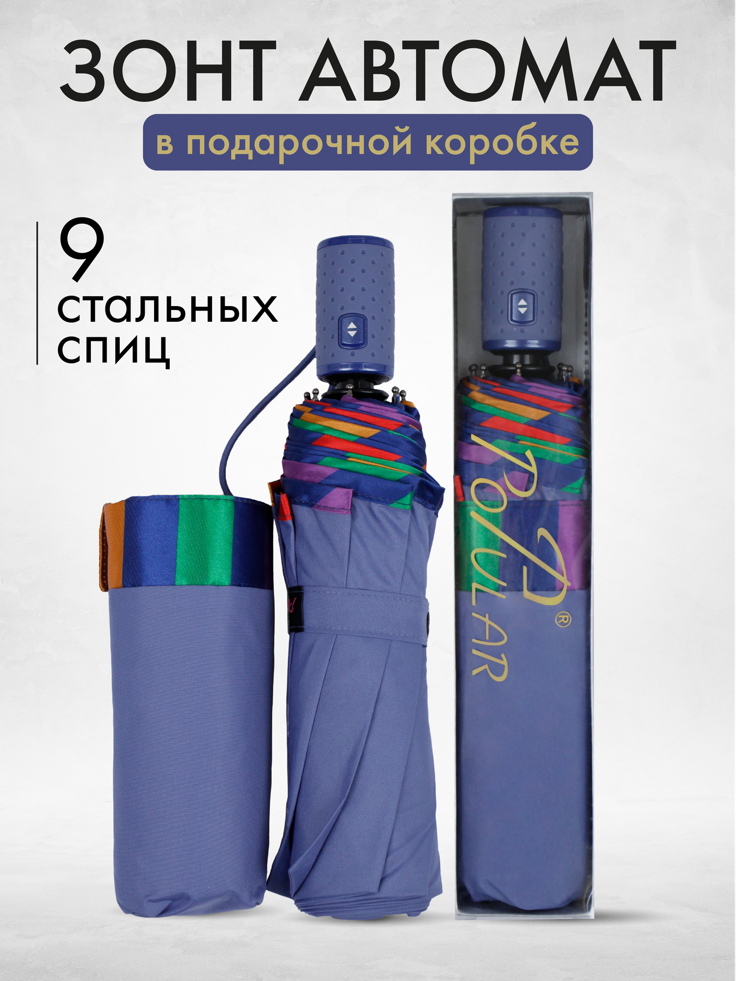 Женский складной зонт Popular Umbrella автомат 2111/синий