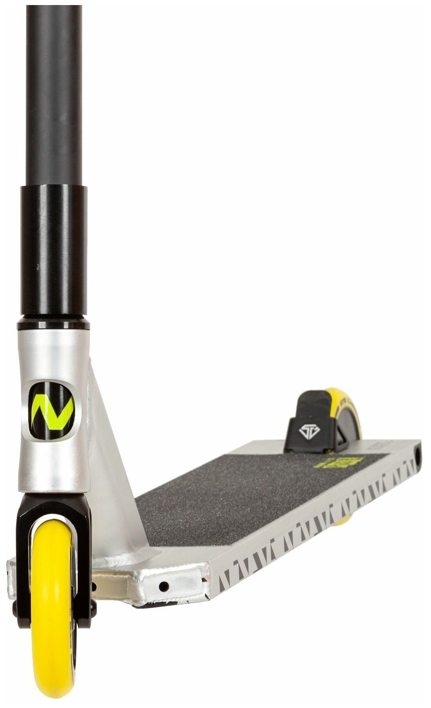 Самокат трюковый NOVATRACK PIXEL'90, PU колеса 110 мм с алюмин.ободом, жесткость PU 88A, серебристый