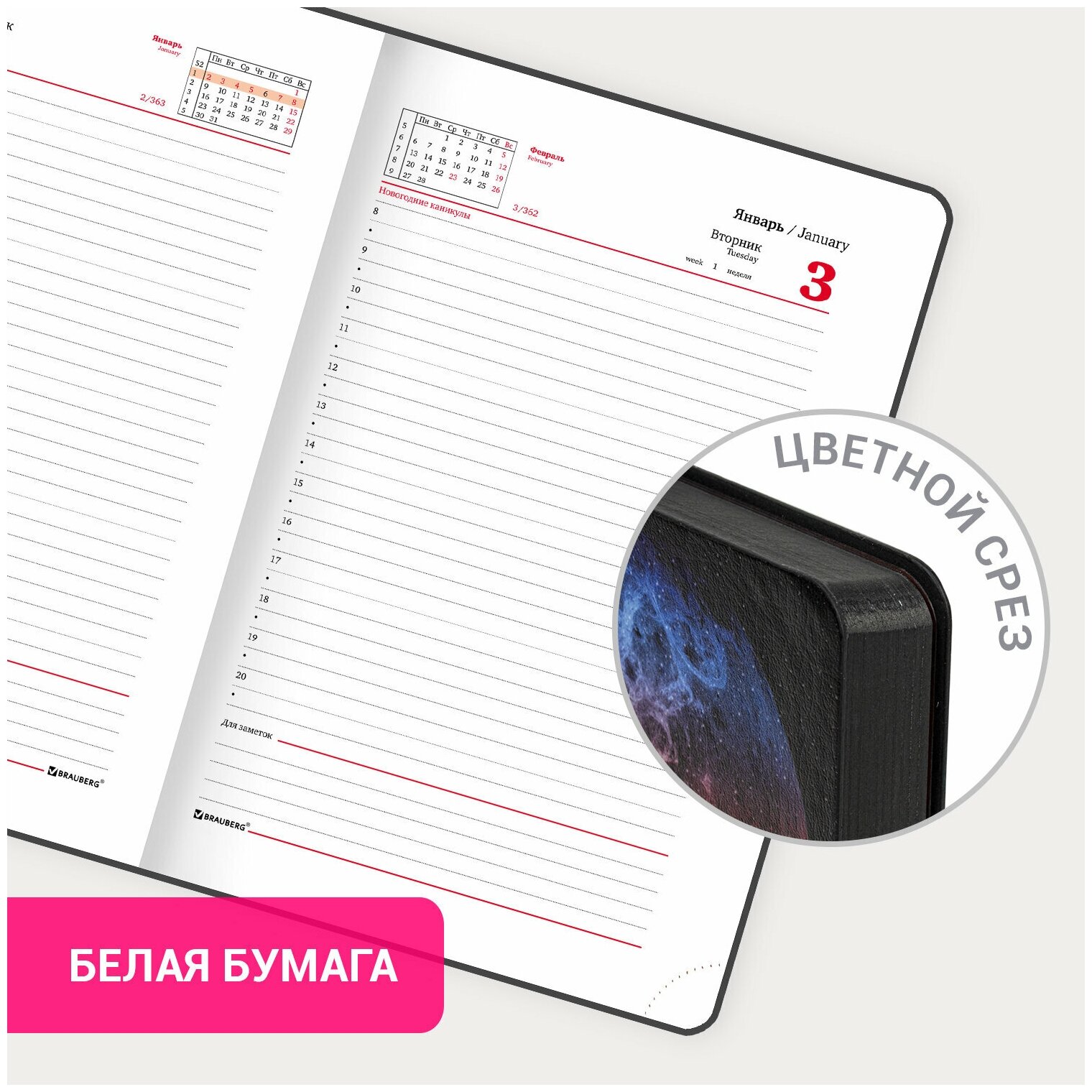 | Плюсы: | Качественная обложка, датированные страницы, закладка, качество бумаги |